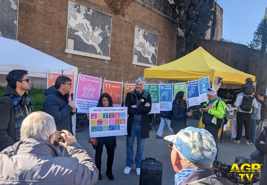 La associazioni promotrici della manifestazione hanno presentato i 17 obiettivi dell'Agenda 20230 peer una mobilità sostenibile a Roma. “Insieme per costruire la città del futuro con al centro la persona, la salute e il diritto alla mobilità per tutte e tutti, libera finalmente dalle auto”