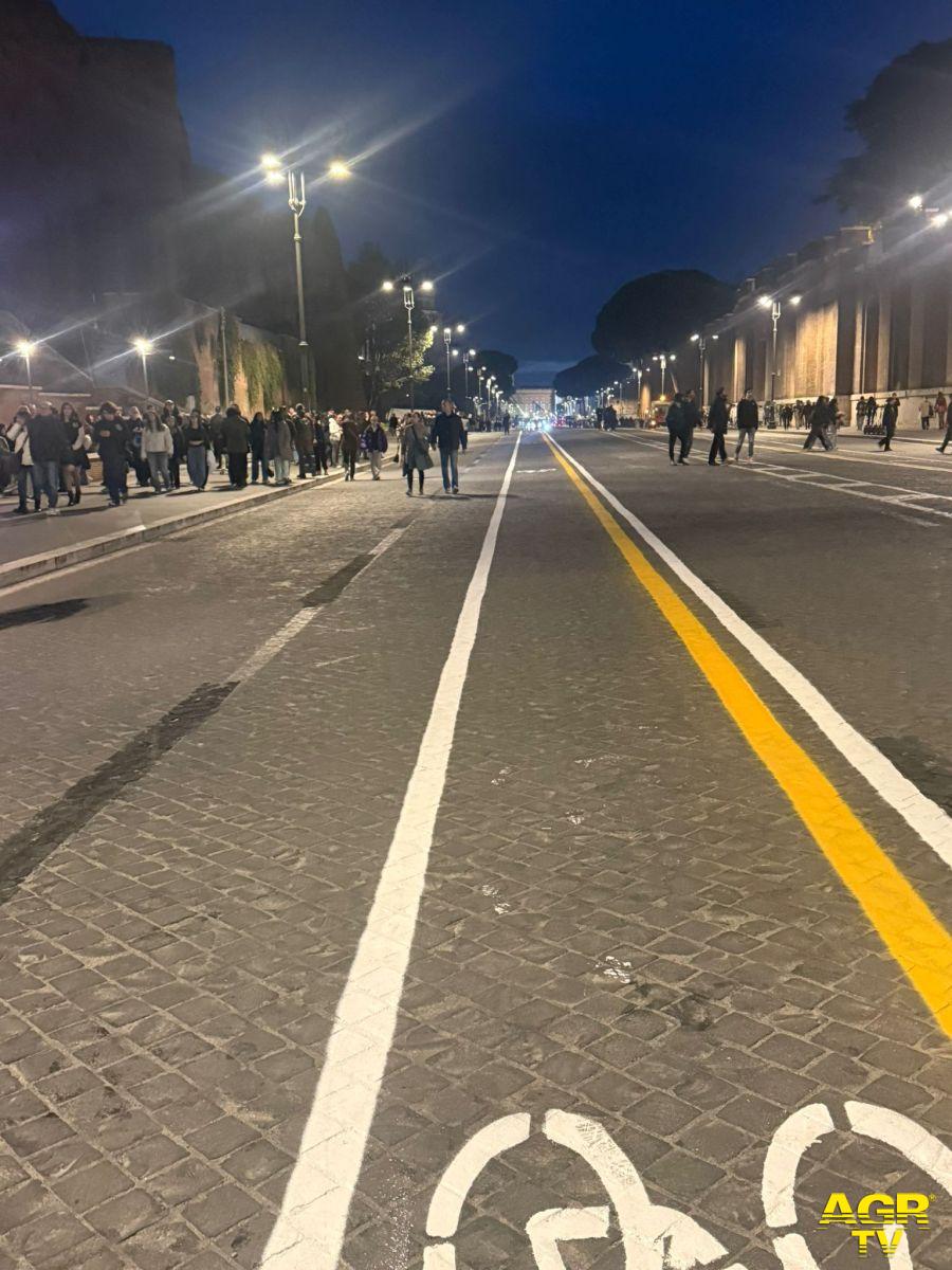 (AGR) Roma, nuova segnaletica stradale su via dei Fori Imperiali, tracciata la pista ciclabile e più spazio ai pedoni
